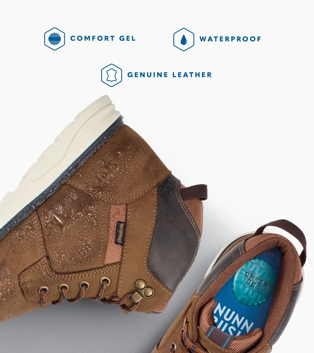 Never let the weather interfere with your plans. Be prepared with the proper practical yet stylish shoe/boot. The Luxor features a subtle two-tone midsole and seam-sealed waterproof leather upper along with a Comfort Gel footbed and Softgel heel pod.Â